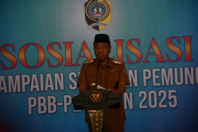 koranpilar.com, Tulungagung. Dalam upaya memperkuat kemandirian fiskal daerah, Bupati Tulungagung, Gatut Sunu Wibowo, menegaskan pentingnya optimalisasi Pendapatan Asli Daerah (PAD), khususnya dari sektor Pajak Bumi dan Bangunan Perdesaan dan Perkotaan (PBB-P2). Hal tersebut disampaikan Bupati dalam kegiatan sosialisasi peningkatan realisasi PBB-P2 di lingkungan Pemerintah Kabupaten Tulungagung, Selasa (18/3).