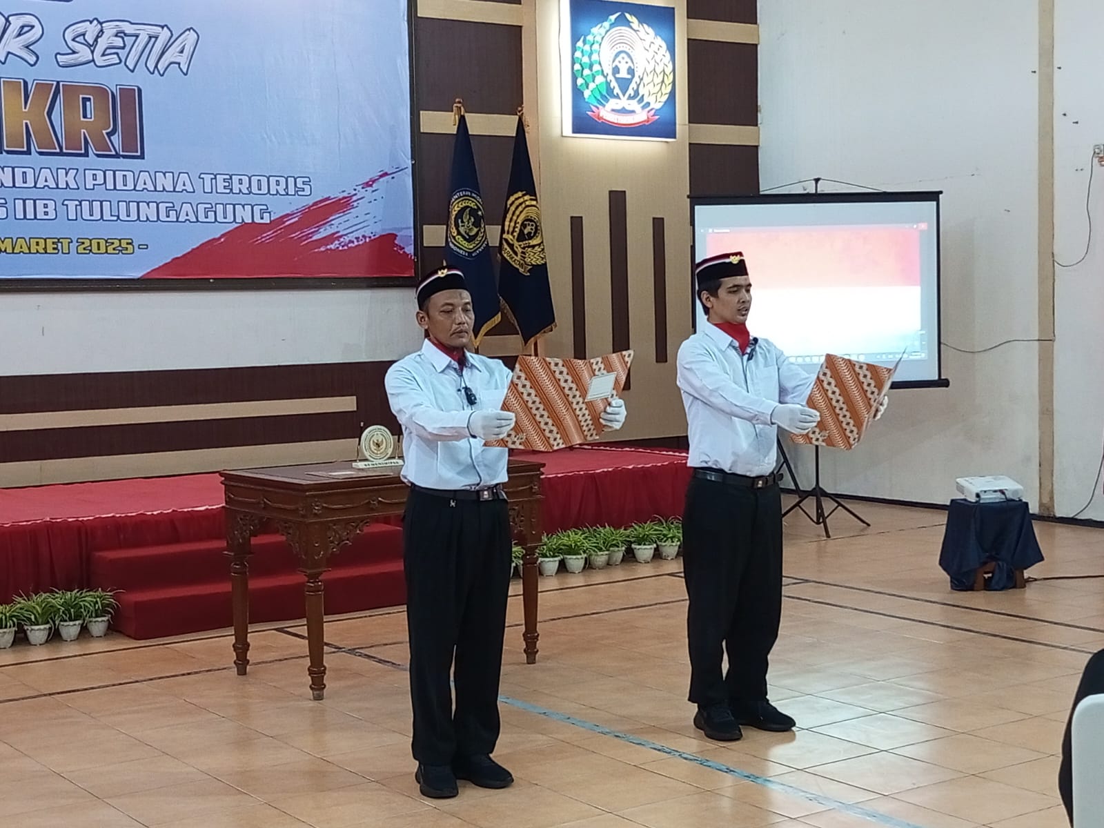 koranpilar.com, TULUNGAGUNG – Dua narapidana tindak pidana terorisme yang tengah menjalani masa pidana di Lembaga Pemasyarakatan (Lapas) Kelas IIB Tulungagung secara resmi menyatakan ikrar setia kepada Negara Kesatuan Republik Indonesia (NKRI), pada Selasa, 12 Maret 2025.