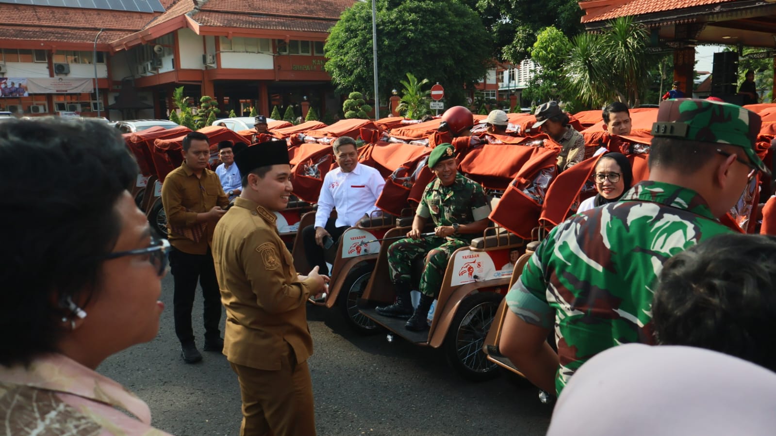 Mojokerto – Sebanyak 100 orang tukang becak lanjut usia (lansia) di Kabupaten Mojokerto menerima bantuan unit becak listrik yang disalurkan langsung dari Presiden Republik Indonesia, Prabowo Subianto. Serah terima bantuan dilaksanakan di Pendopo Graha Majatama Pemkab Mojokerto, pada Selasa (25/11).