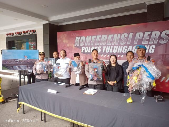 koranpilar.com, Tulungagung. Kepolisian Resor Tulungagung mengungkap kasus ledakan balon udara yang menyebabkan kerusakan rumah warga di Desa Suruhan Lor, Kecamatan Bandung, Kabupaten Tulungagung, Jawa Timur. Ledakan tersebut diketahui berasal dari petasan yang diikatkan pada balon udara dan diterbangkan oleh sekelompok remaja.