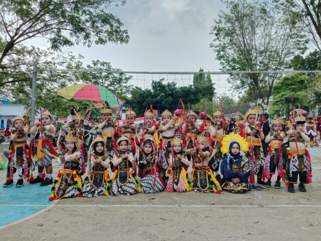 Terlihat para siswa siswi bersemangat dan menghibur saat menampilkan pakaian dari berbagai adat nusantara, seperti pakaian adat Bali, adat jawa, juga kostum kostum lucu lainya.