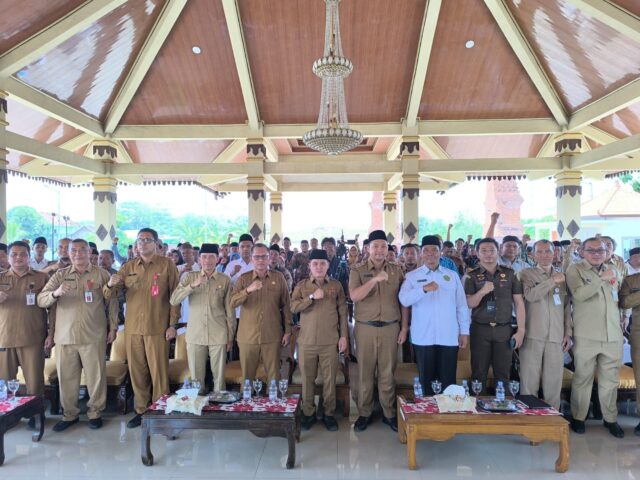 Mojokerto – Pemerintah Kabupaten Mojokerto menyalurkan hibah senilai Rp9,802 miliar kepada 65 lembaga keagamaan melalui program Perubahan Anggaran Pendapatan dan Belanja Daerah (P-APBD) Tahun 2025. Bantuan itu diberikan secara simbolis oleh Bupati Mojokerto Muhammad Albarra (Gus Barra) dalam acara Sosialisasi dan Pembekalan Penerima Hibah yang digelar di Pendopo Rumah Dinas Wakil Bupati Mojokerto, Senin (6/10).