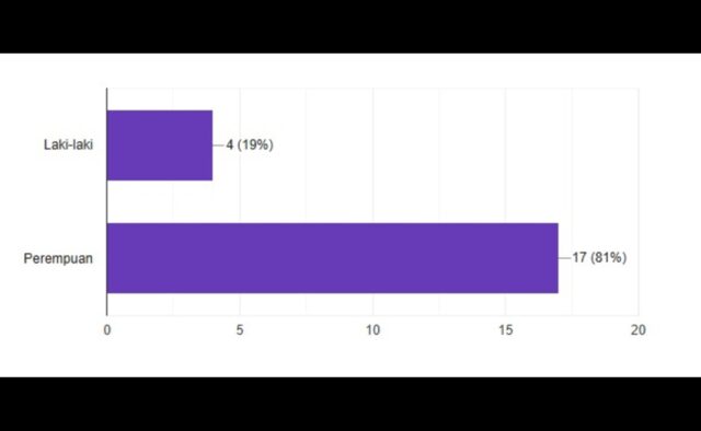 Hasil pengumpulan data menunjukkan profil responden yang cukup kontras, di mana jumlah mahasiswa perempuan jauh lebih dominan dibandingkan mahasiswa laki-laki. Dari data 17 perempuan dibanding 4 laki-laki.