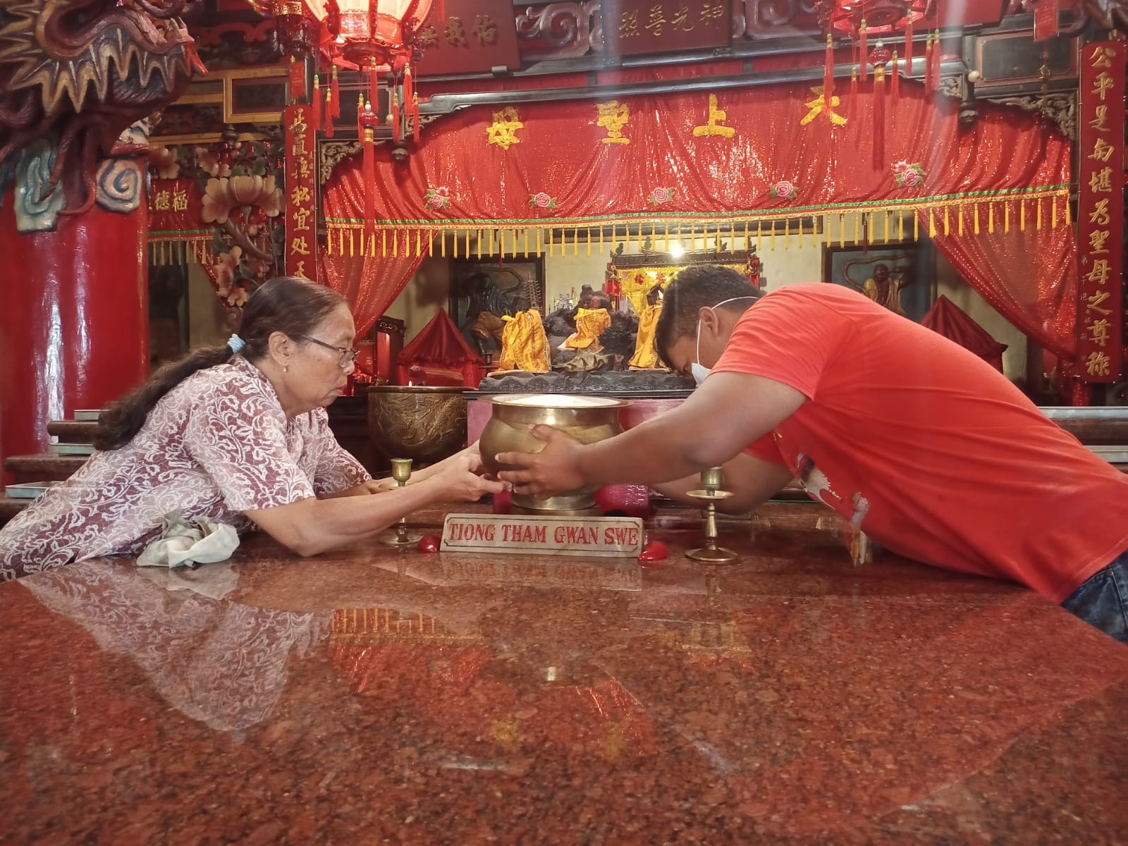 Ritual ini melibatkan pembersihan abu dupa dan lilin dari 12 altar yang ada. Abu halus ditata kembali ke dalam wadah dupa, sementara sisa-sisa batang dupa dibuang. Menariknya, abu hasil ritual ini sering dimanfaatkan sebagai obat tradisional, namun penggunaannya memerlukan izin dari dewa. “Harus izin dewa dulu. Kalau dewa mengizinkan dan yang meminta yakin, abu tersebut bisa digunakan sebagai obat,” tambah Jing Jing.
